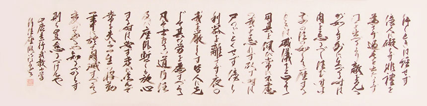 筆書き文字、書家の筆文字作品、書道家の毛筆手書き筆文字展示室へようこそ。 毛筆筆書き文字作品のオーダーメイド販売作品を掲載しています。